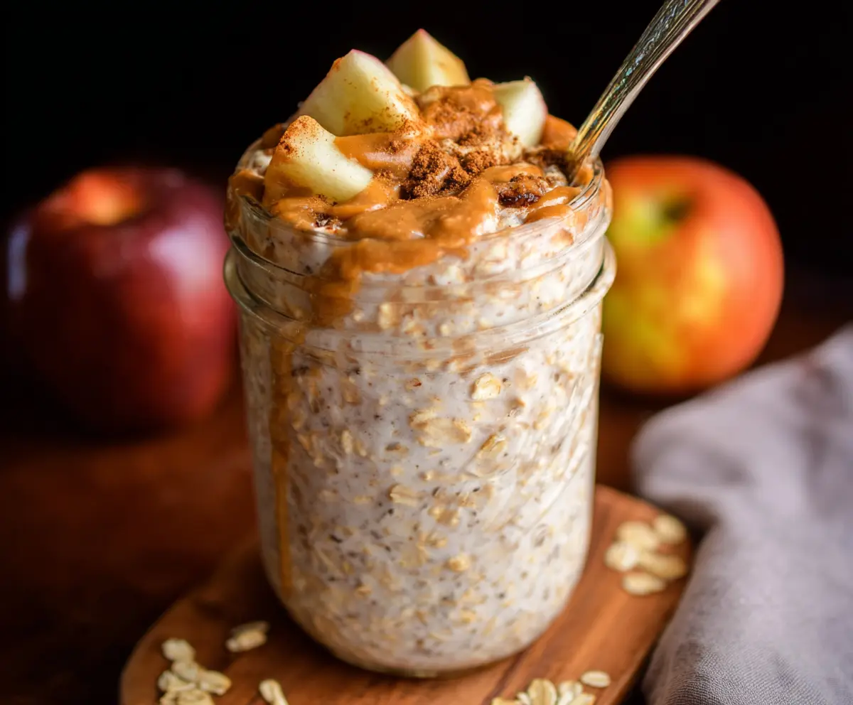 These Apple Cinnamon Protein Overnight Oats are a tasty and healthy breakfast option! Just mix oats, yogurt, diced apples, and a sprinkle of cinnamon. Leave them in the fridge overnight, and you’re all set!