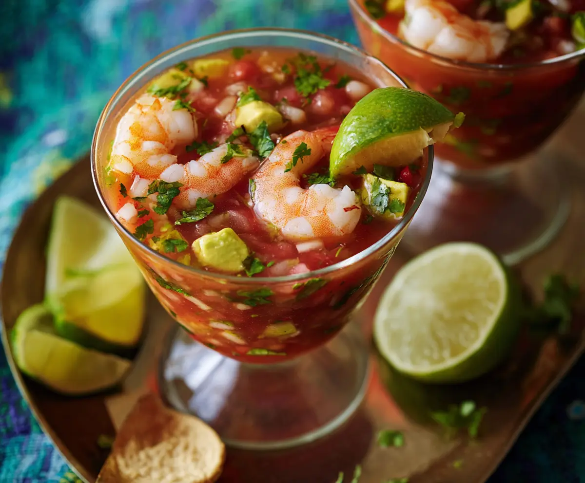 Dish out the shrimp cocktail into chilled cocktail glasses or small bowls. Garnish with lime wedges and a sprinkle of fresh cilantro. Enjoy this refreshing and tangy Mexican classic, perfect for any occasion!