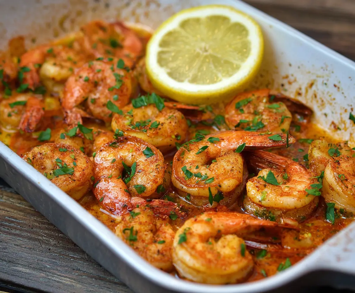 Once baked, remove the dish from the oven and sprinkle the shrimp with chopped fresh parsley. Add lemon slices for a delightful touch. Serve immediately!