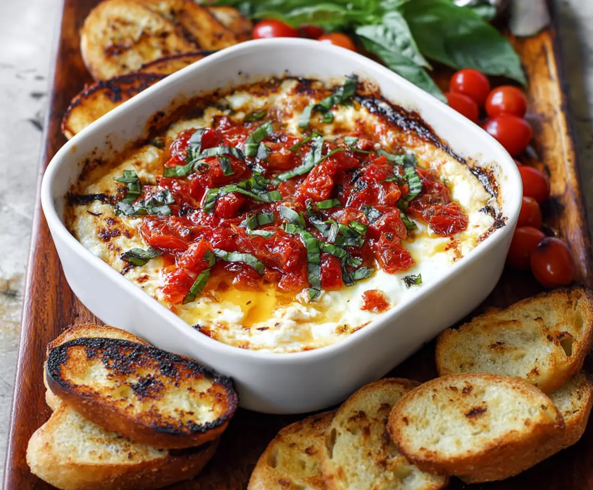 Serve the warm dip with toasted baguette slices for dipping. The combination of creamy goat cheese, sweet roasted tomatoes, and fresh basil will have everyone asking for more!