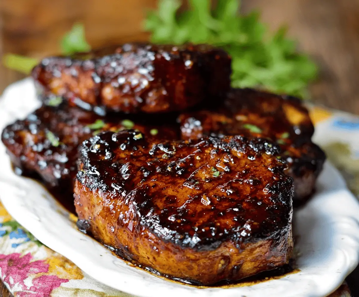 Enjoy your juicy and flavorful balsamic glazed pork chops that are sure to impress your family and friends with their beautiful glossy finish and rich, tangy-sweet glaze!