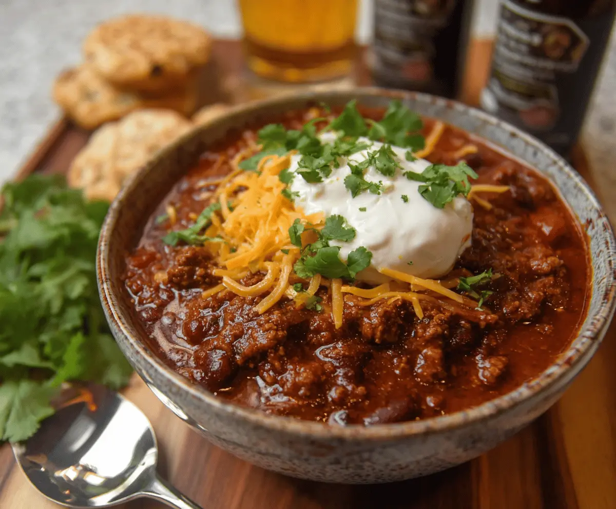 Enjoy your rich and hearty Beer Chili! It’s perfect for cozy nights and sharing with friends!