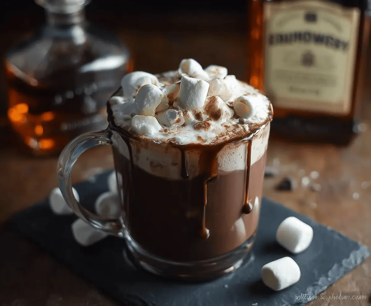 This warm and cozy bourbon spiked hot chocolate is the perfect drink for chilly nights. Rich chocolate mingles with smooth bourbon for a tasty treat that warms your heart!