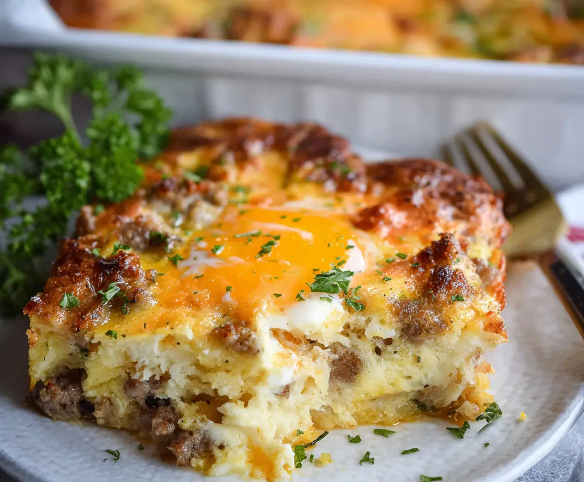 Before serving, add a sprinkle of freshly chopped parsley on top for a pop of color and freshness. Enjoy your warm and hearty breakfast sausage casserole!