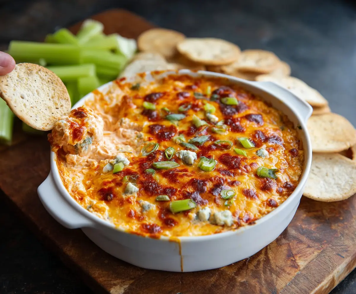 This tasty Buffalo Chicken Dip is a crowd favorite! It features tender chicken mixed with creamy cheese and zesty buffalo sauce, all baked until bubbly and golden.