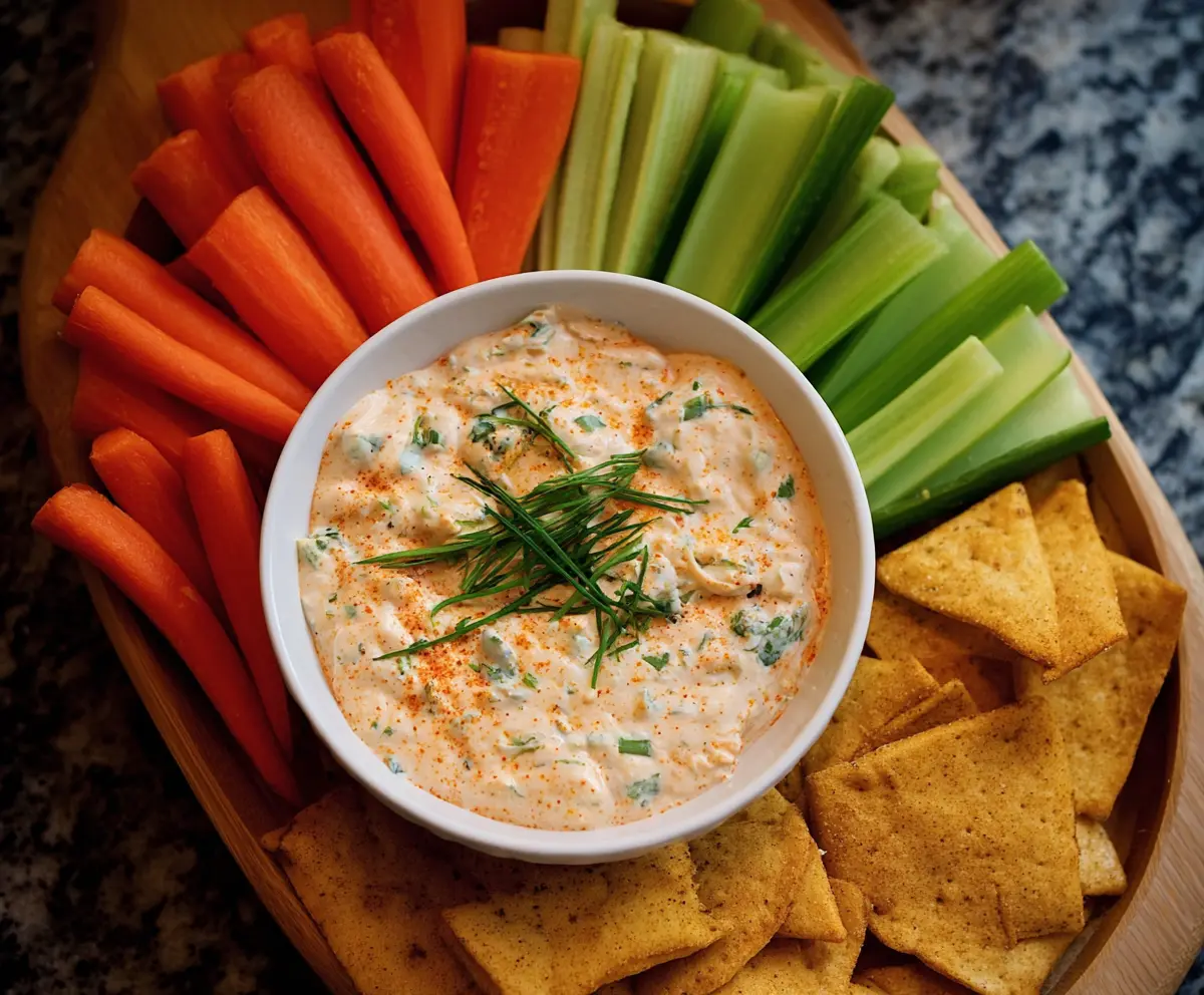 Chill the dip for a bit if you have time, but it’s delicious right away. Serve it alongside crisp celery sticks, carrot sticks, and your favorite crackers. Dive in and enjoy the creamy, spicy goodness!