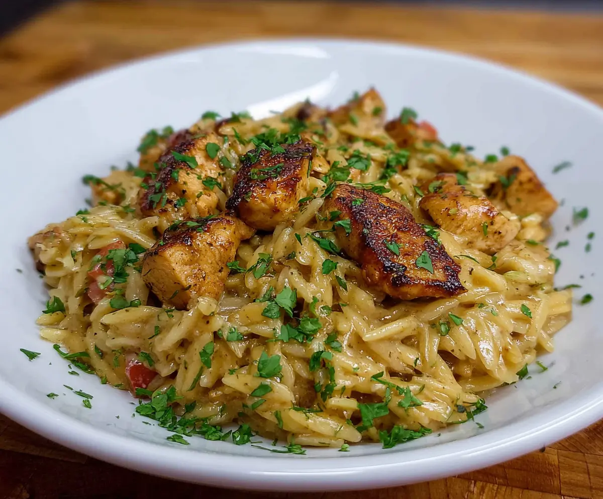 Bon appétit! Enjoy this delightful Cajun Chicken Alfredo Orzo with your family and friends!