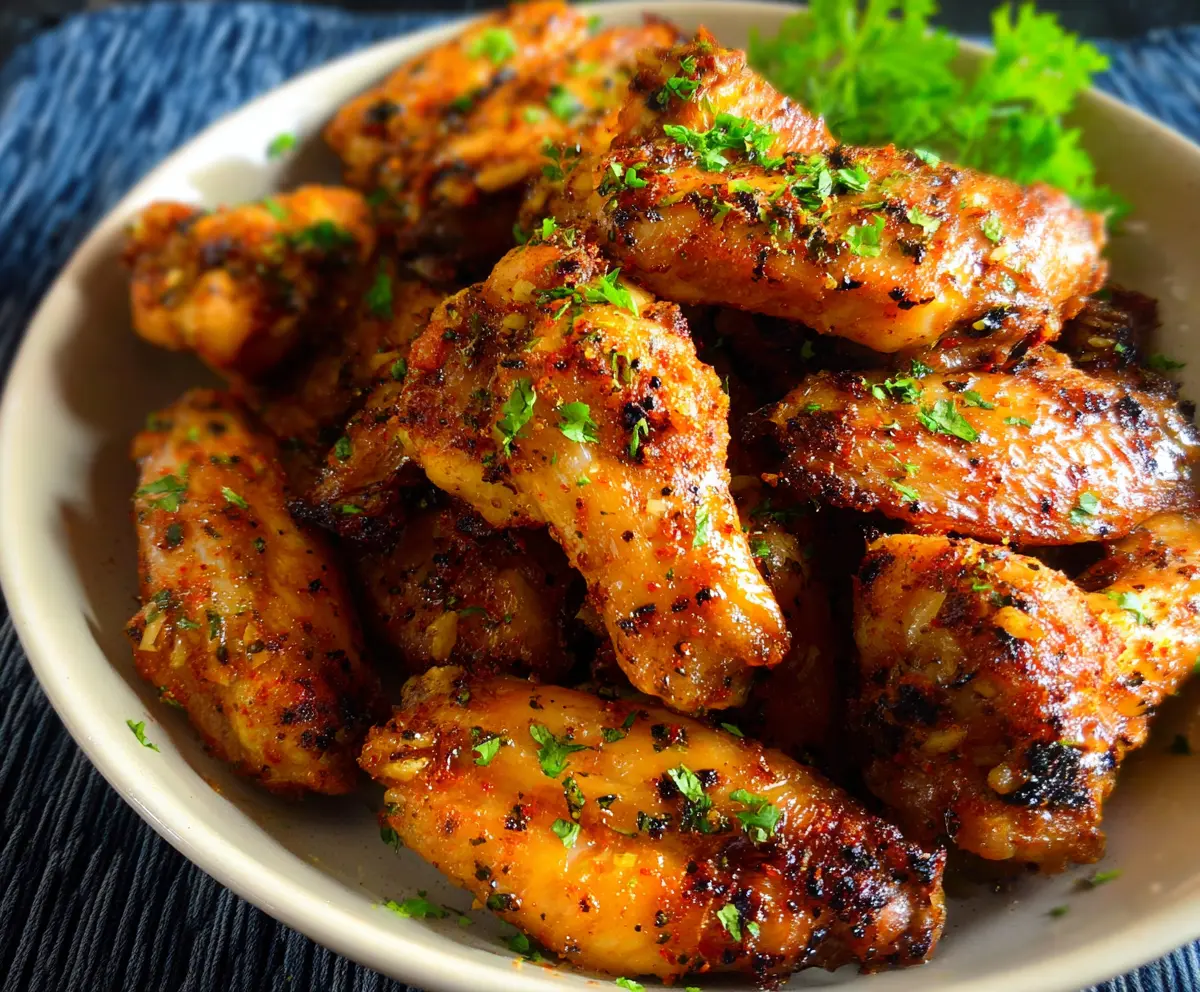 Sprinkle the wings with fresh parsley for a pop of color and freshness. Serve them right away with ranch or blue cheese dressing on the side, if you like!