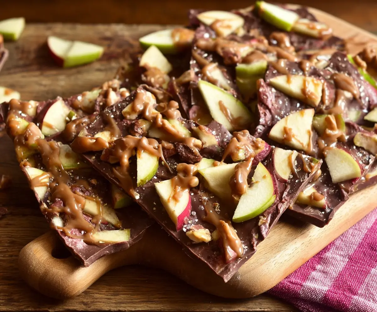 This Caramel Apple Bark is like fall on a plate! It’s sweet, crunchy, and full of tasty apple pieces and creamy caramel, all sprinkled on smooth chocolate. Yum!