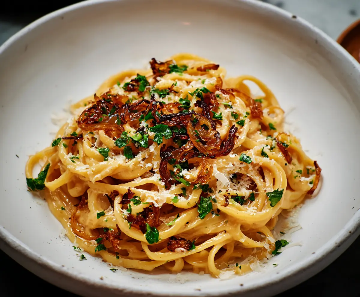 I love how the sweet onions add so much flavor, making this dish feel special without being complicated. You can’t go wrong with a little cheese on top! 🍝✨
