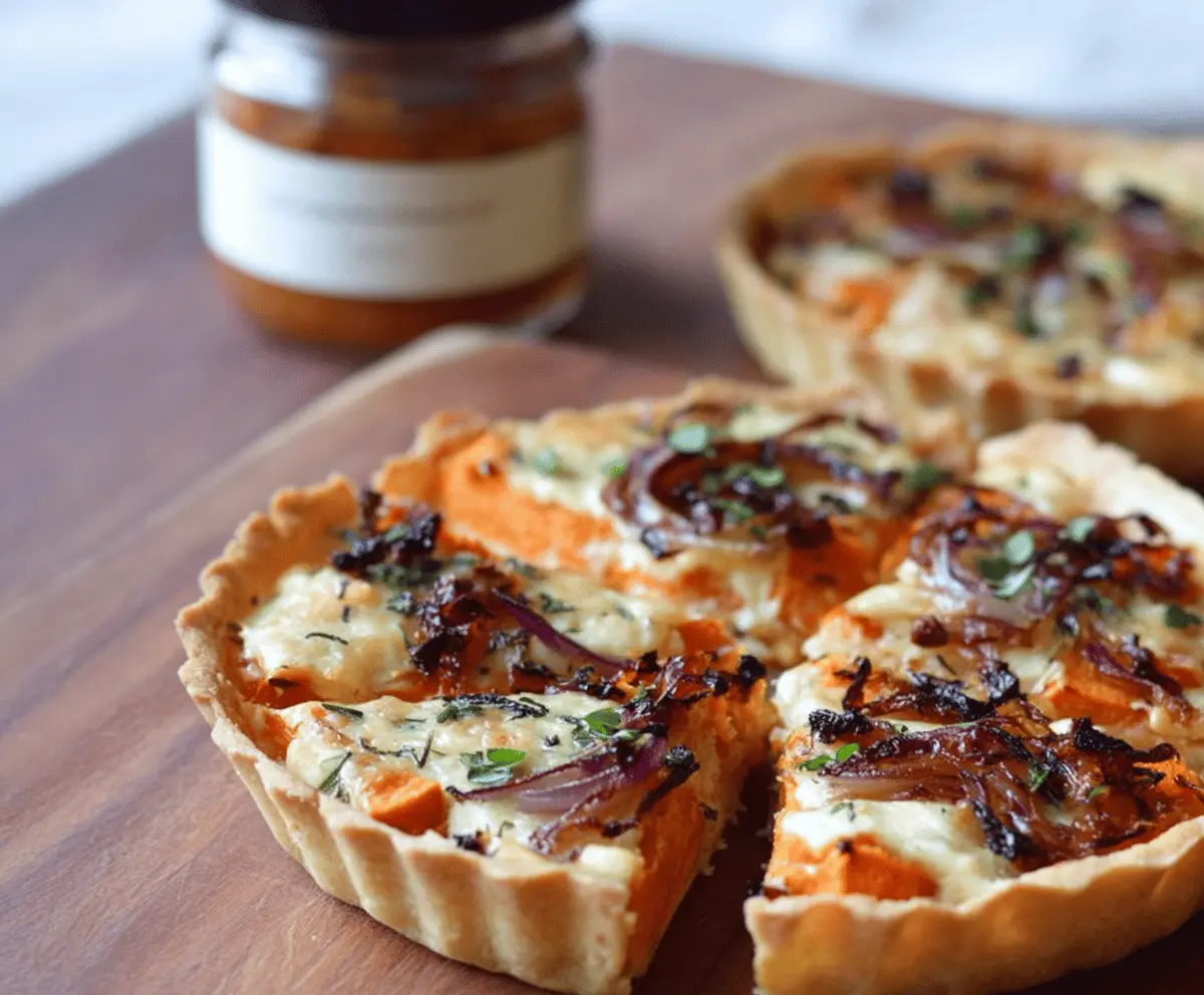 This Caramelized Onion and Sweet Potato Tart is a delicious blend of sweet and savory flavors. The buttery crust is filled with soft sweet potatoes and rich caramelized onions.