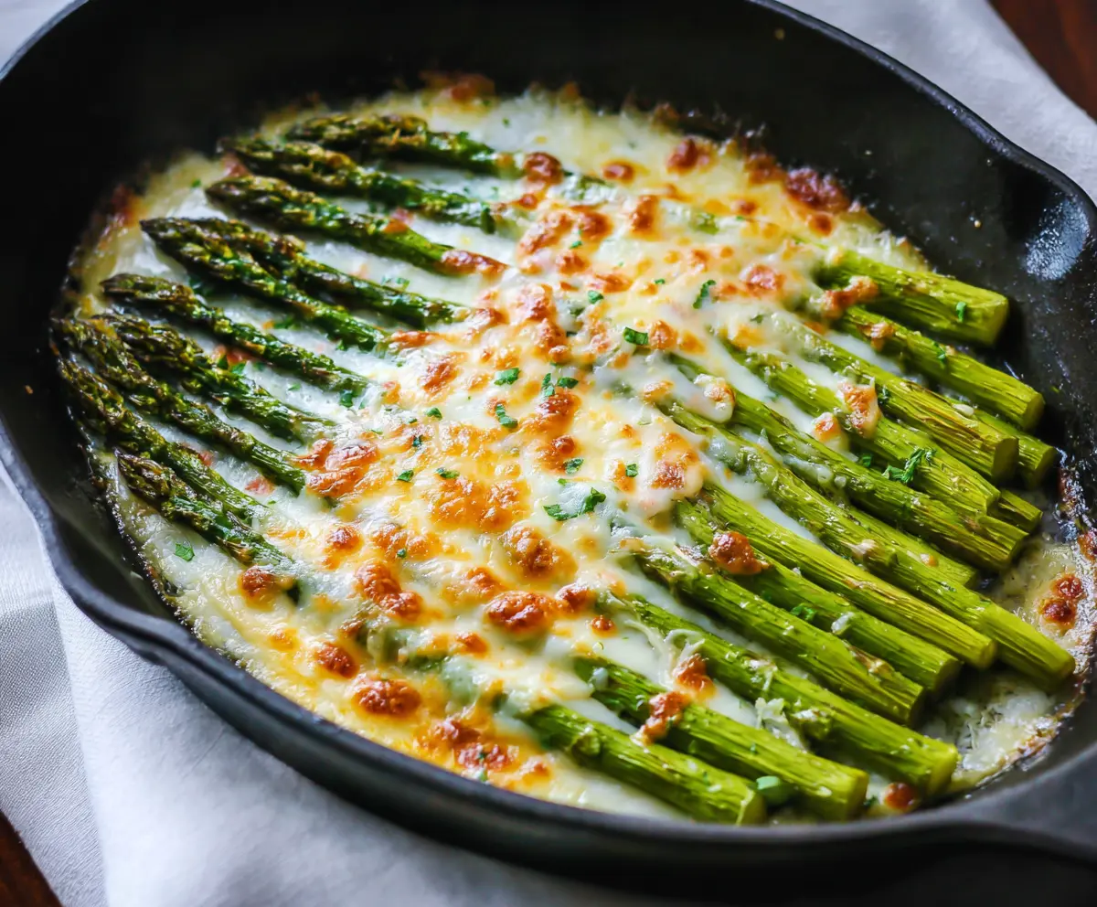 This cheesy baked asparagus is a tasty side dish that brings together fresh asparagus and gooey cheese. It’s quick to make and perfect for any meal!