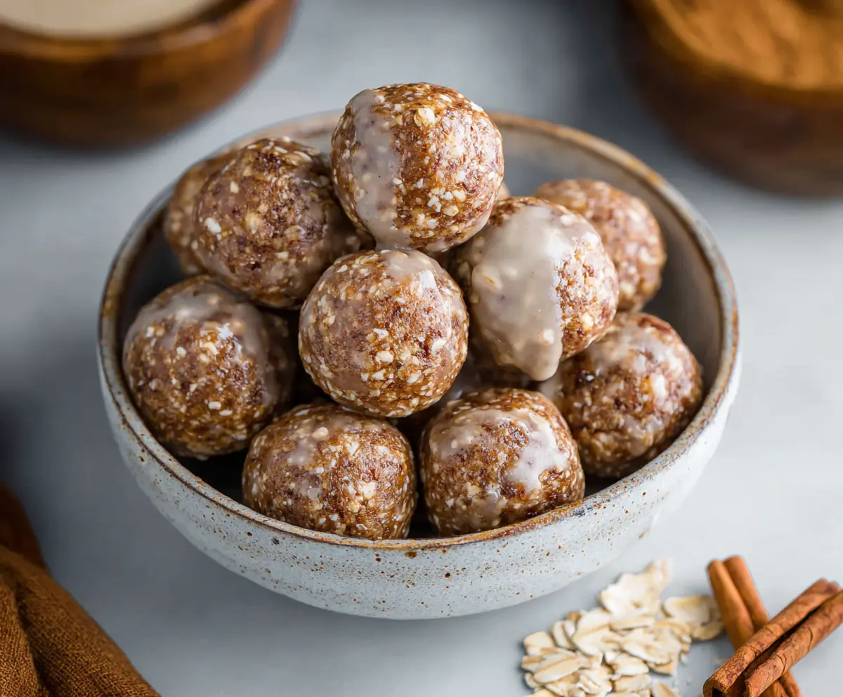 If you’d like to add a sweet touch, prepare the cinnamon icing. In a small bowl, mix the powdered sugar (or almond flour) with just enough water to create a loose glaze. Drizzle this icing over your energy bites for that extra flavor kick!