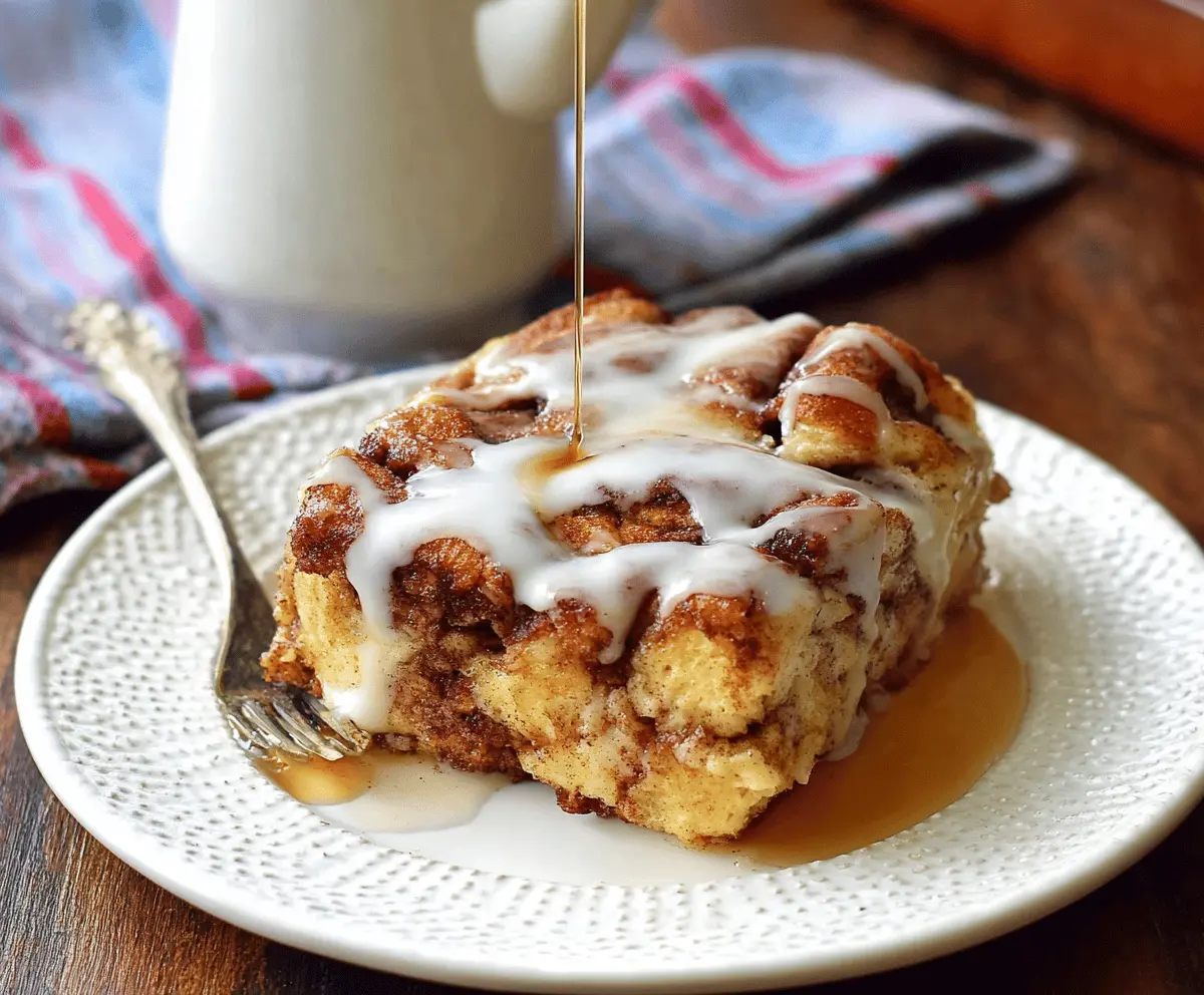 Enjoy this rich, sweet cinnamon roll French toast casserole that’s perfect for a comforting meal! 😊