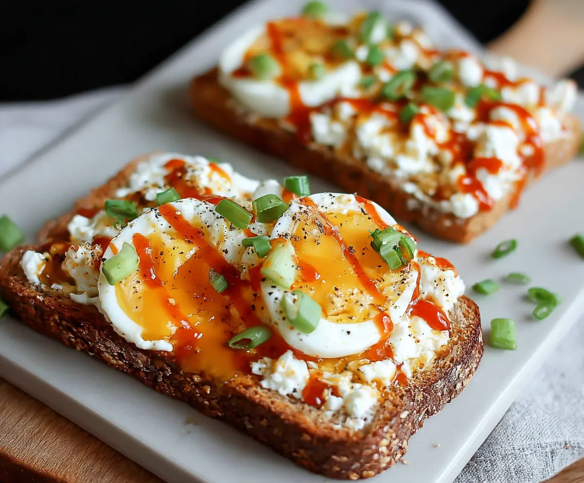This Cottage Cheese Egg and Sriracha Protein Toast is a tasty and healthy breakfast option! With creamy cottage cheese, a perfectly cooked egg, and a kick of spicy Sriracha, it packs a punch!