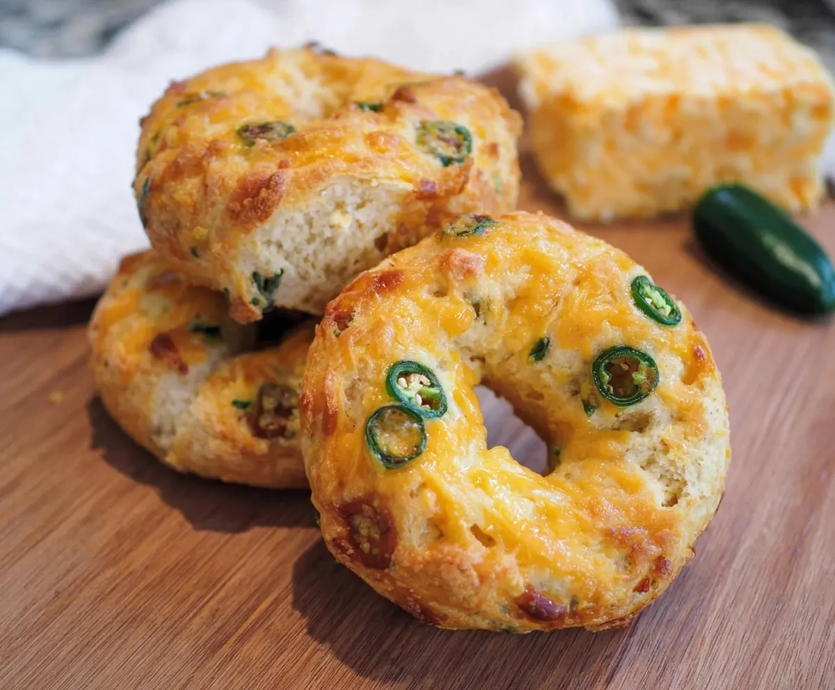 These Cottage Cheese Jalapeño Cheddar Bagels are a tasty twist on a classic! Packed with creamy cottage cheese, spicy jalapeños, and sharp cheddar, they’re full of flavor.