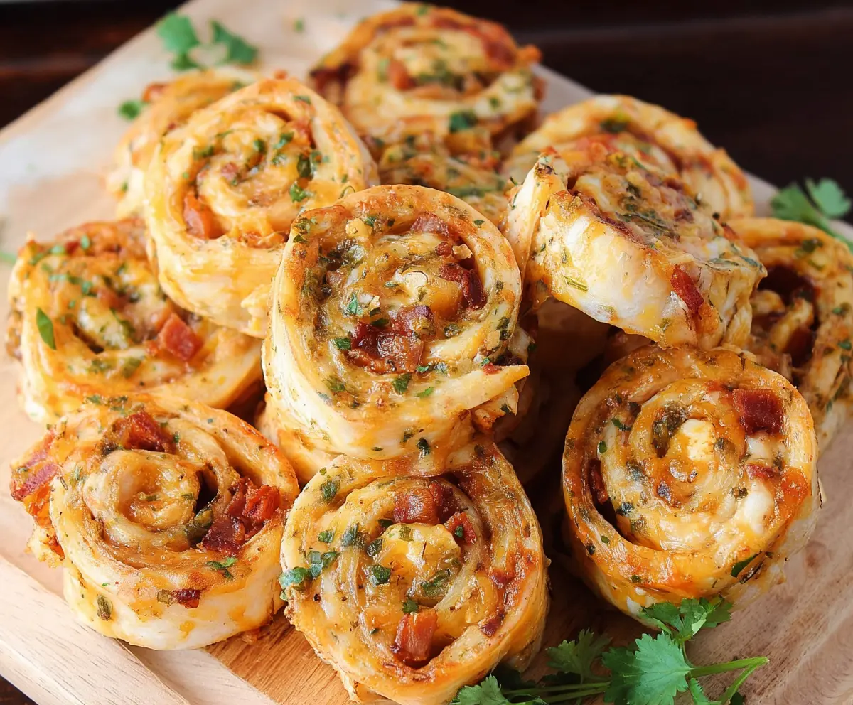 After baking, remove the pinwheels from the oven and let them cool for just a few minutes. If you want, sprinkle some fresh parsley or cilantro on top for a little extra taste and a pop of color.