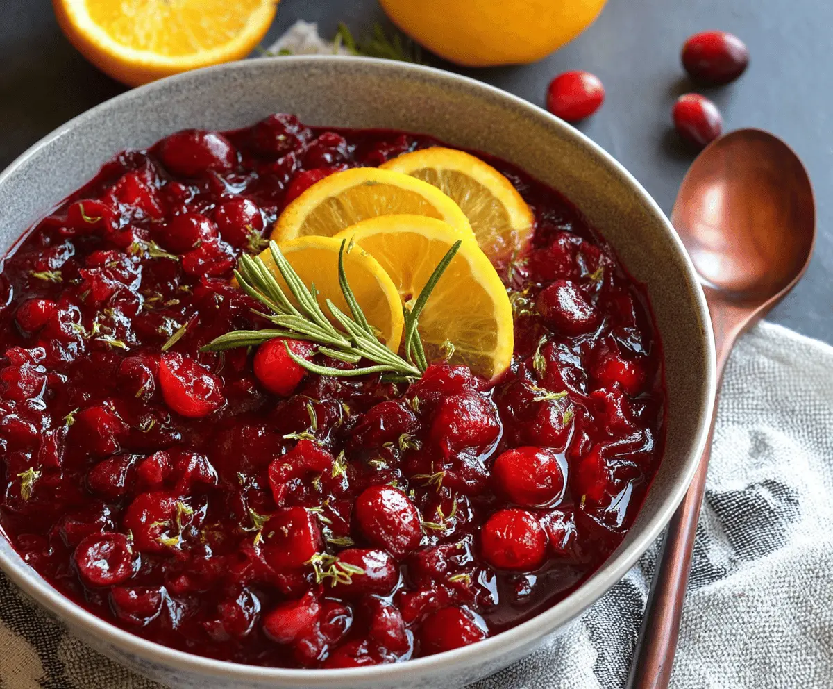 Once cooled, transfer your beautiful cranberry orange sauce into a serving bowl. For that extra touch, you can garnish it with a sprig of fresh rosemary or thyme and a slice of orange on top!