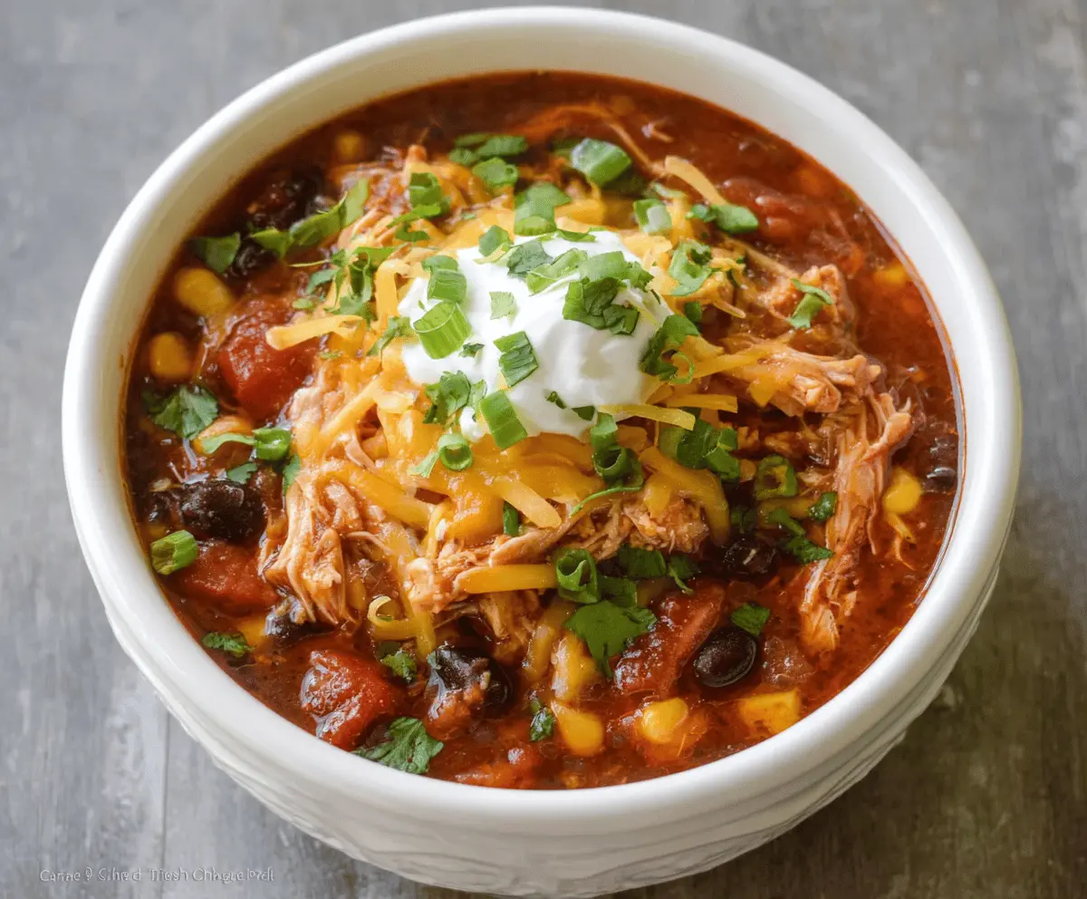 Your hearty Crockpot Chicken Taco Soup is now ready to be served! Enjoy it hot, alongside some crunchy tortilla chips or warm tortillas for dipping. It’s the perfect comfort food for any day!