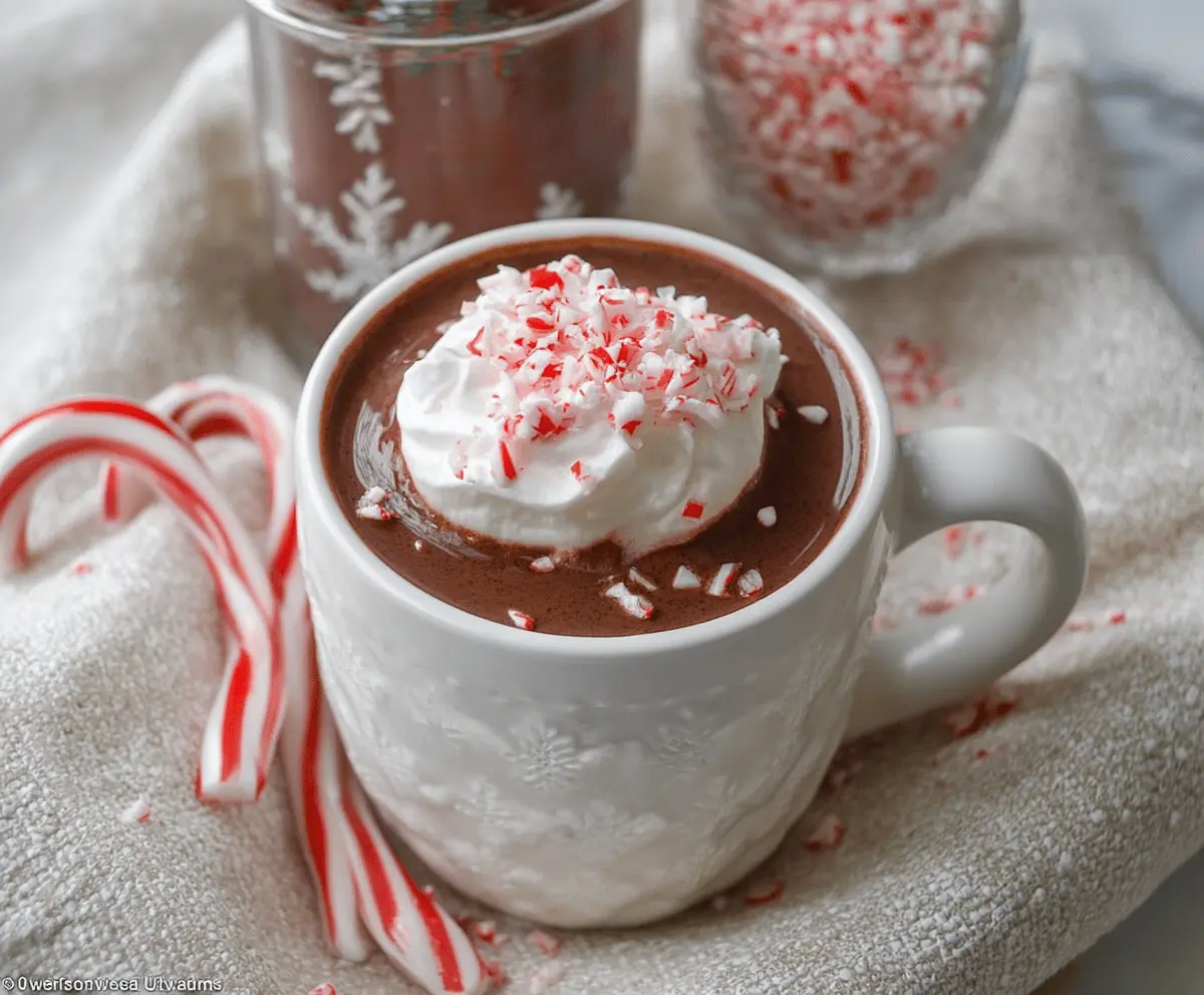 Top each mug with a fluffy dollop of whipped cream. To add a nice festive touch, sprinkle crushed peppermint candies or candy canes on top of the whipped cream.