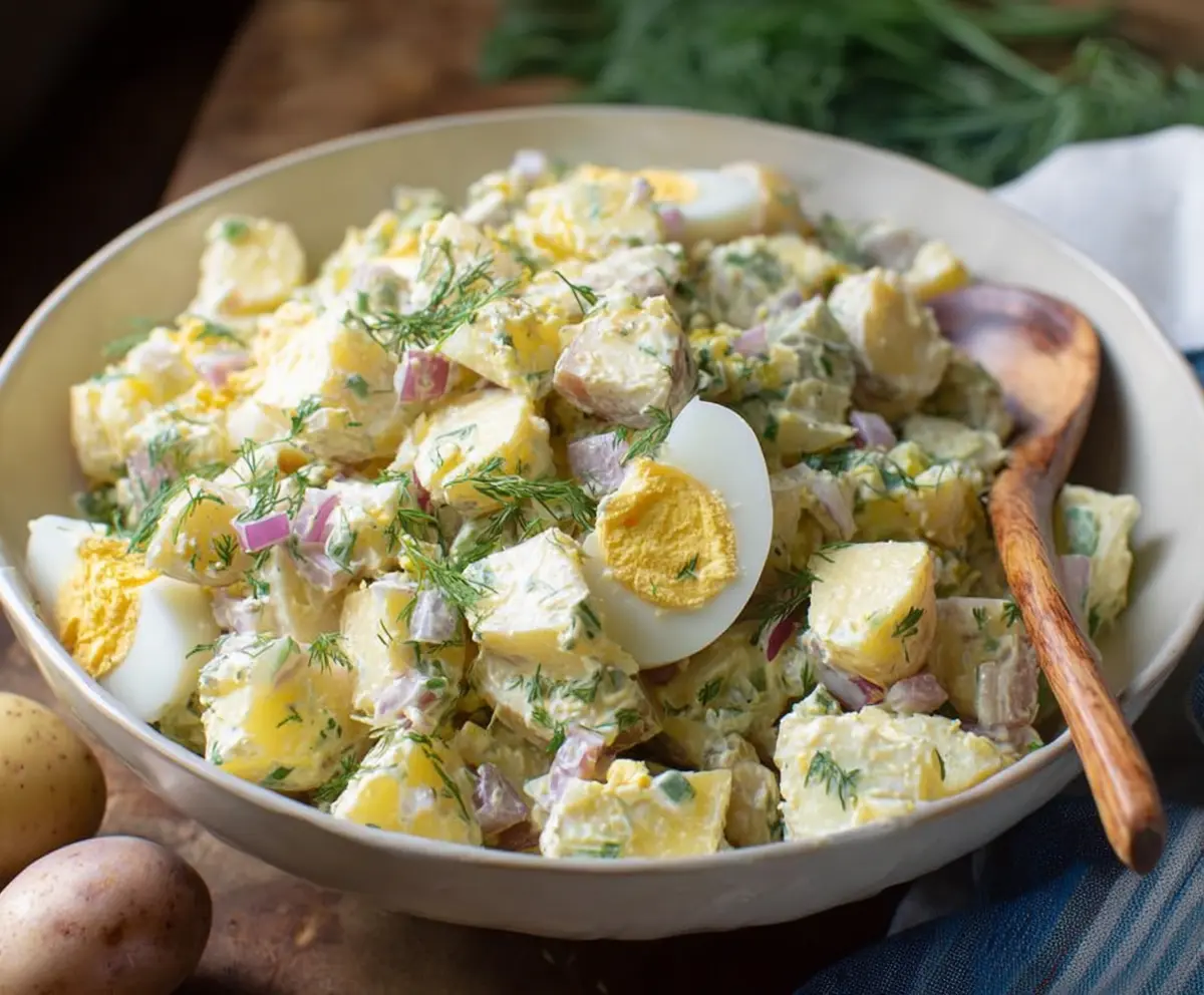 Transfer your beautiful potato salad to a serving bowl. Garnish with the reserved egg halves, some extra sprigs of dill, and a light sprinkle of paprika for that pop of color.