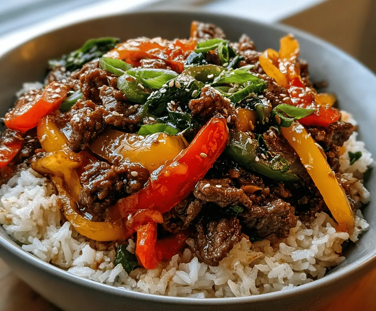 This Easy Beef and Pepper Rice Bowl is a fun and tasty meal! You have juicy beef, colorful peppers, and fluffy rice all mixed together. It’s quick to make and full of flavor!