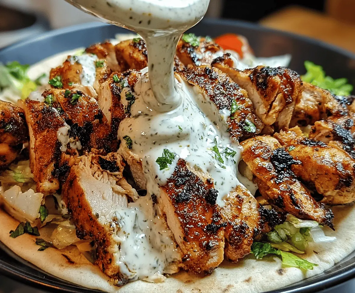 Once everything is ready, lay the cooked chicken on the warmed bread. Drizzle generously with your creamy garlic sauce, and top it with sliced cucumbers, tomatoes, fresh herbs, pickles, and greens as you like.
