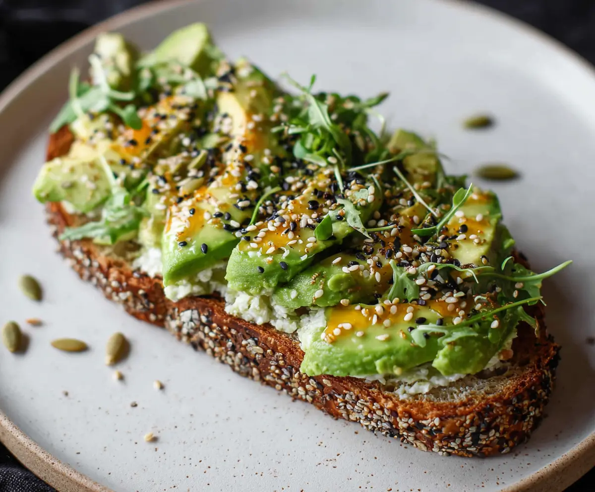 This recipe showcases the delightful contrast between the crunchy, nutty seasoning and the creamy, rich avocado, all layered on a hearty seeded bread base. You’ll love this simple and visually vibrant dish!