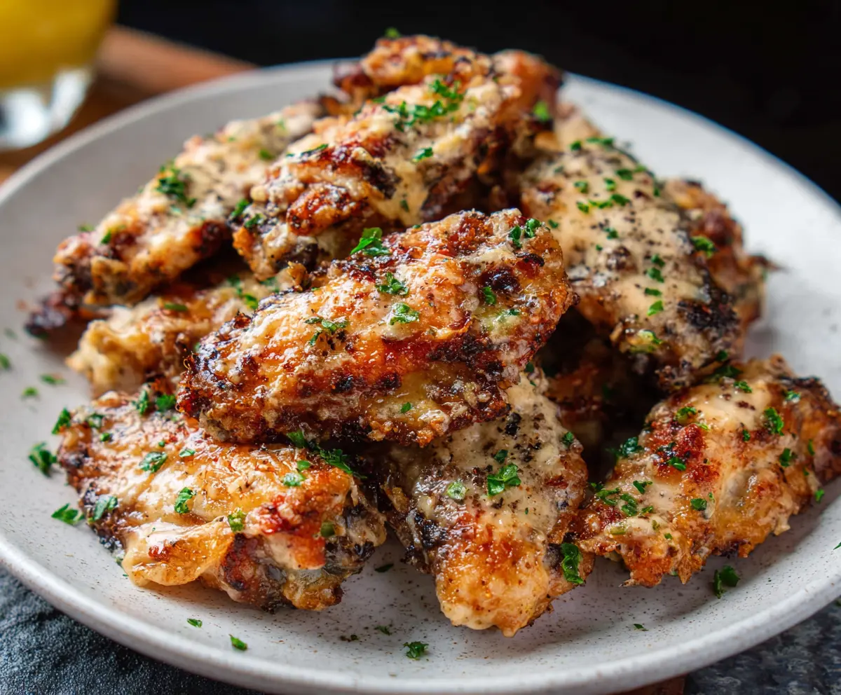 Finally, place the wings on a serving platter. For an extra touch, sprinkle some additional grated Parmesan and chopped parsley over the top. Serve these tasty wings hot and enjoy!