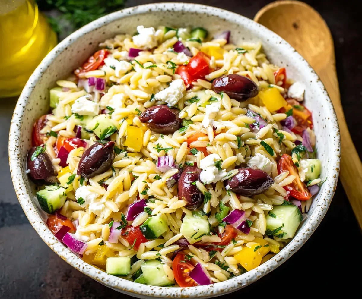 This Greek Orzo Salad is a colorful and fresh dish that is perfect for any meal. Made with orzo pasta, juicy tomatoes, cucumbers, olives, and feta cheese, it’s bursting with flavor!