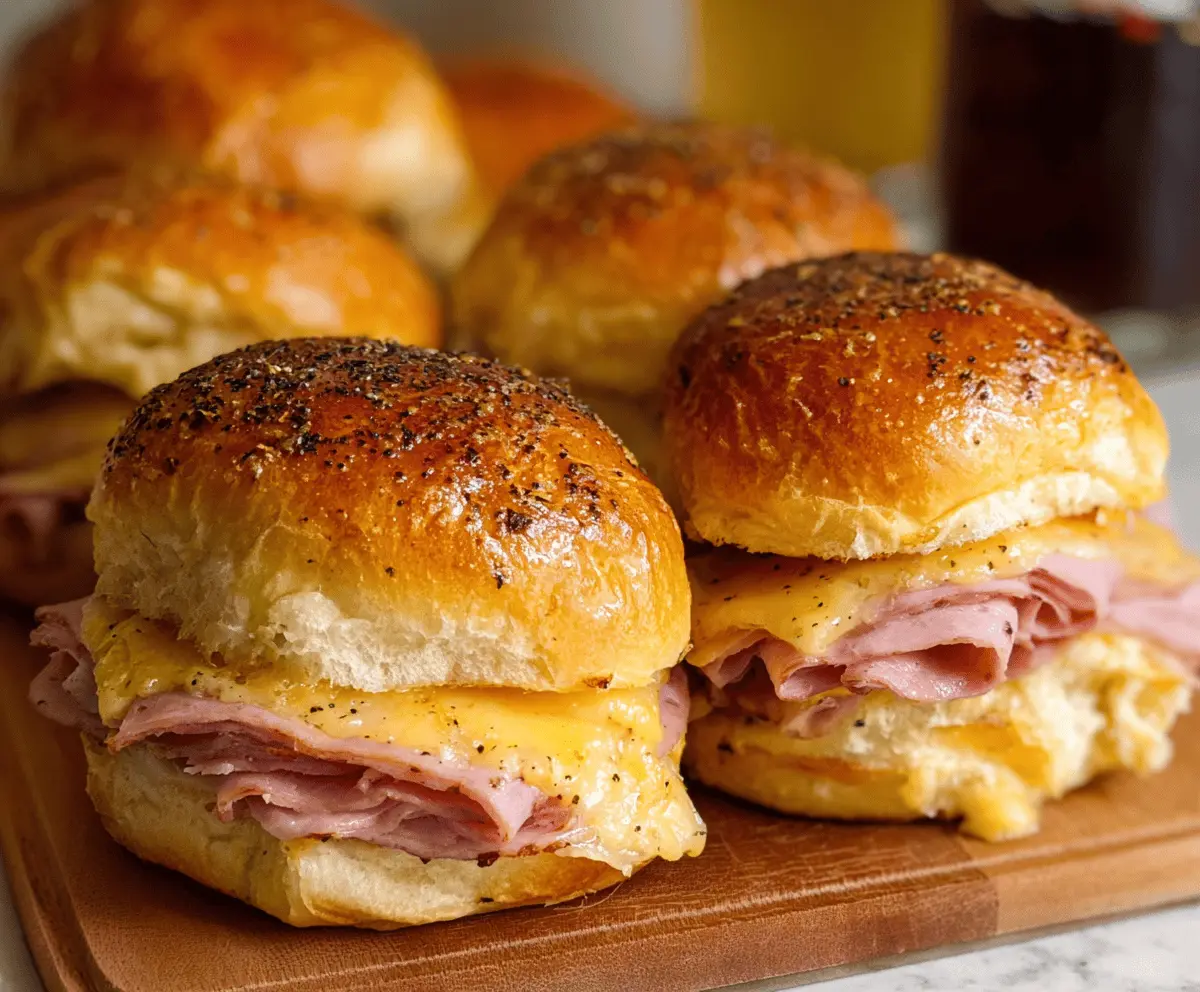 These warm, gooey ham and cheese sliders are perfect for parties, snacks, or a cozy meal! Enjoy every bite! 🥪✨