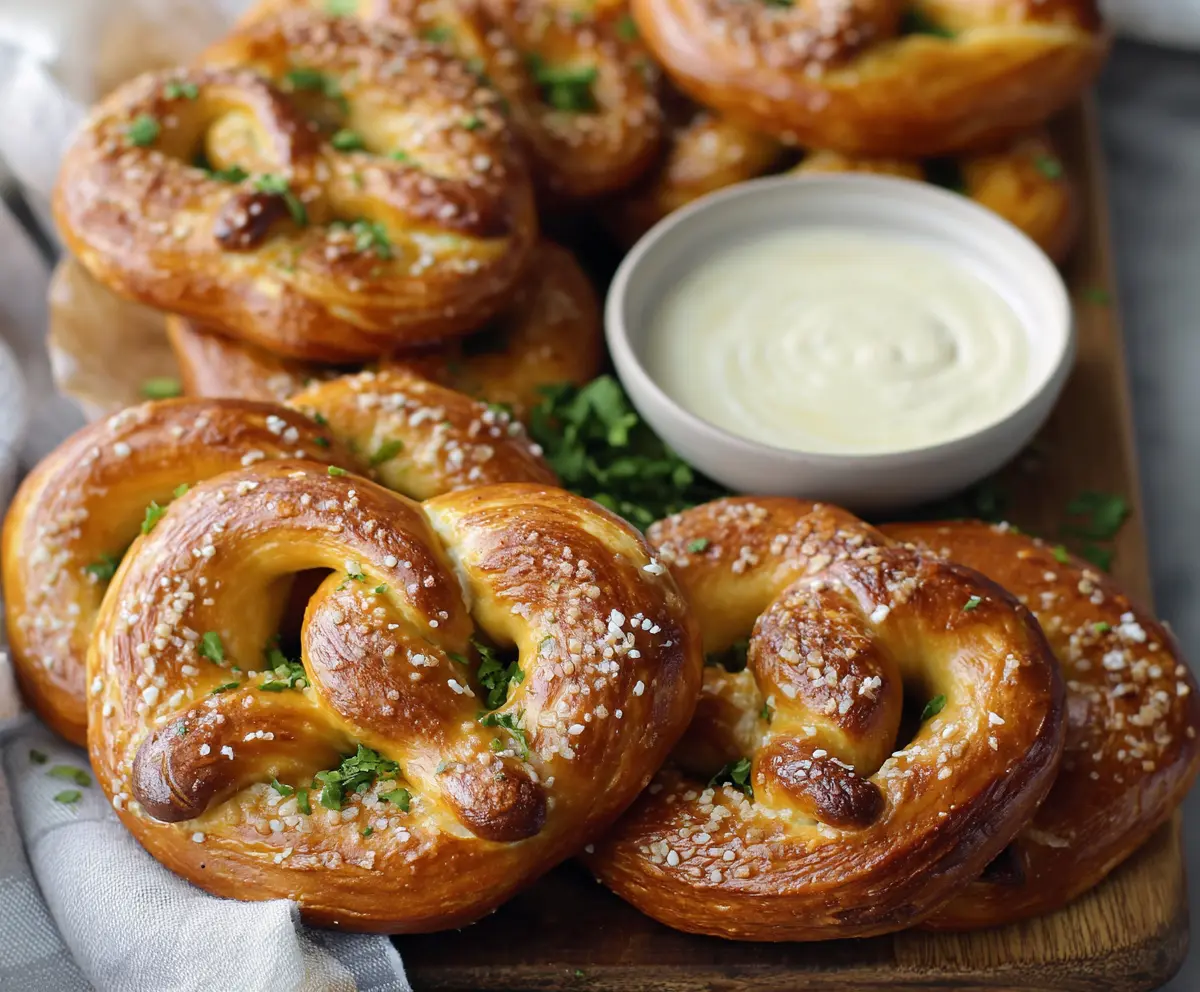 Once the pretzels are out of the oven, arrange them on a serving platter around a bowl of warm queso dip. Garnish the queso with chopped chives or parsley for a pop of color. Dive into your homemade pretzels with that creamy cheese — it’s going to be a hit!