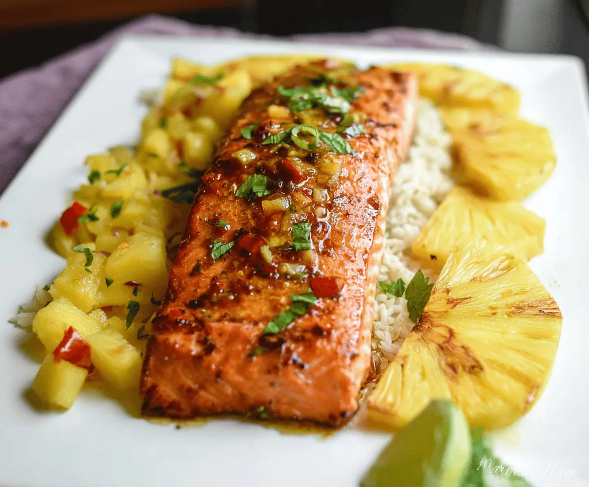 This recipe combines the tender richness of salmon with a sweet and tangy pineapple glaze, accentuated by honey and ginger for a delightful tropical twist. Enjoy cooking!