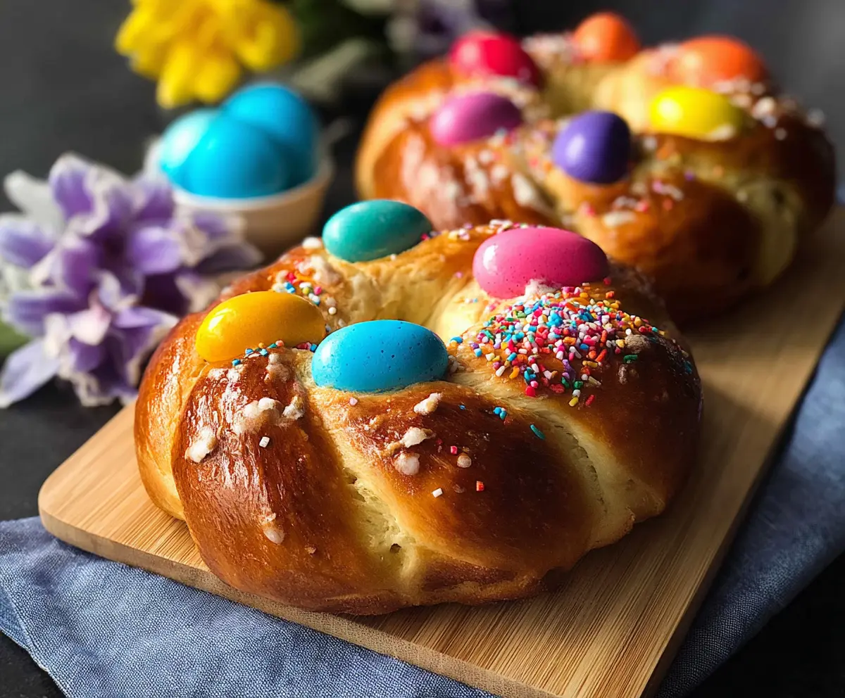 This Italian Easter Bread is a fluffy, sweet delight, topped with colorful eggs that bring joy to the table. It’s perfect for celebrating the holiday with family!
