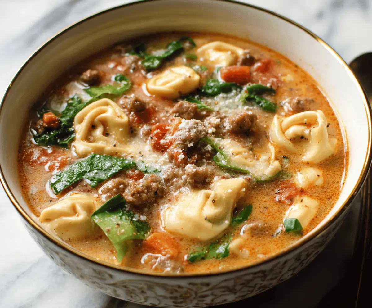 Before serving, taste the soup and adjust the seasoning with salt and pepper as needed. Ladle the soup into bowls and top each serving with grated Parmesan cheese and a sprinkle of chopped fresh parsley. Enjoy your hearty and comforting Italian Sausage Tortellini Soup!