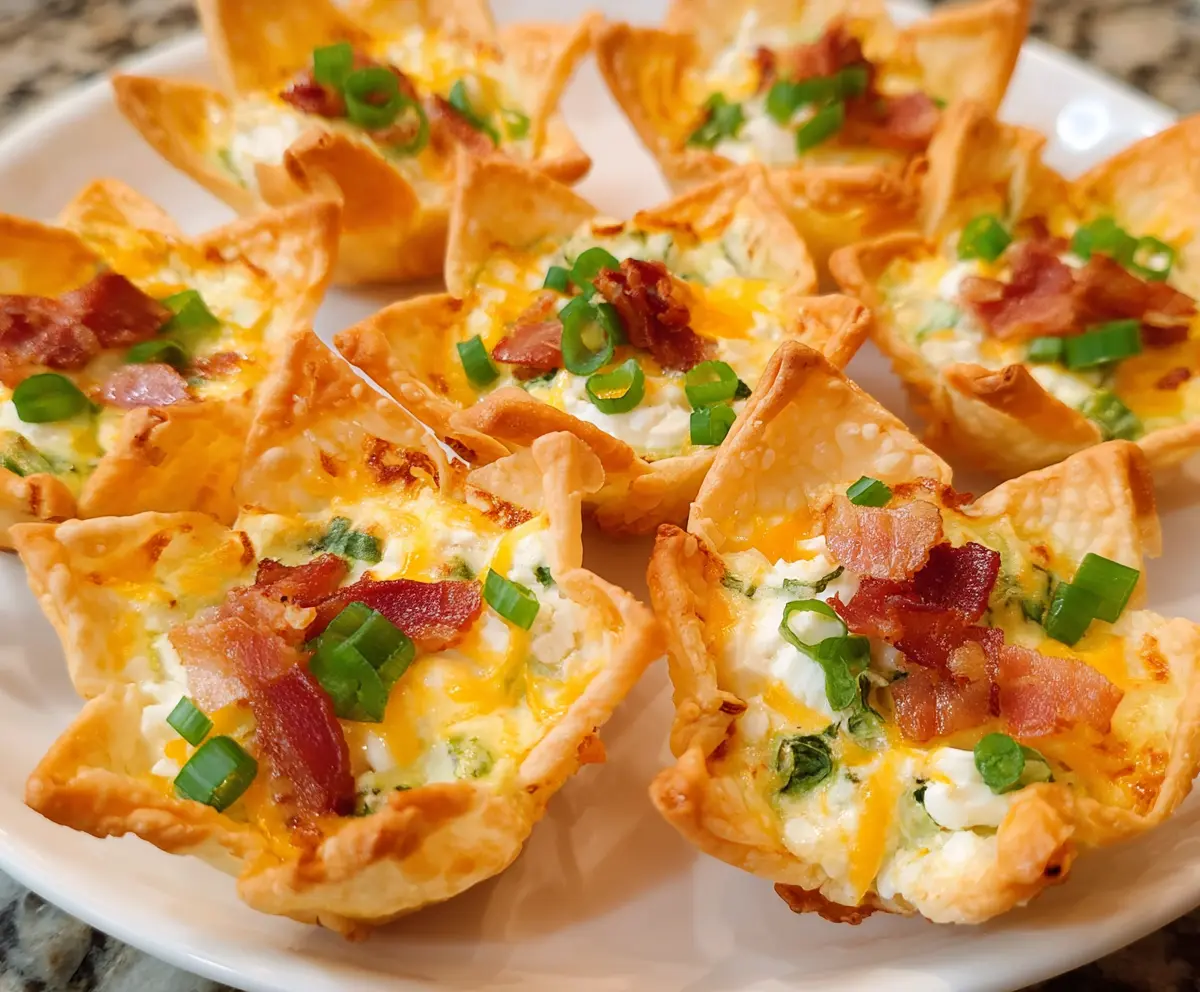 Pop the muffin tin into the oven and bake for about 12-15 minutes. Keep an eye on them—they’re done when the wonton cups are golden brown and the cheese is bubbly!