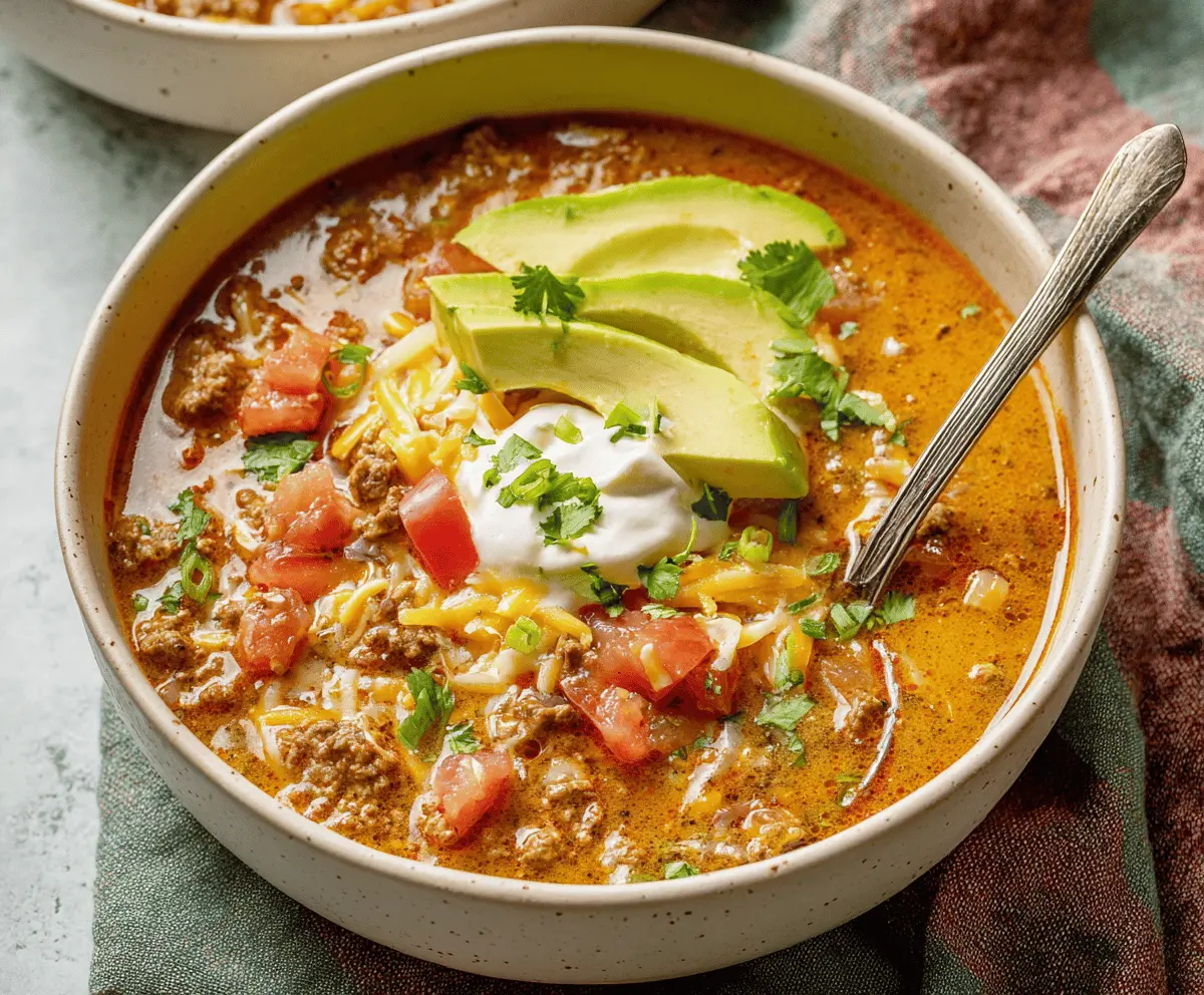 And let’s be real, who doesn’t love tacos in a bowl? I like to top mine with cheese and avocado for extra flavor. Enjoying this cozy soup always feels like a treat! 🌮😊