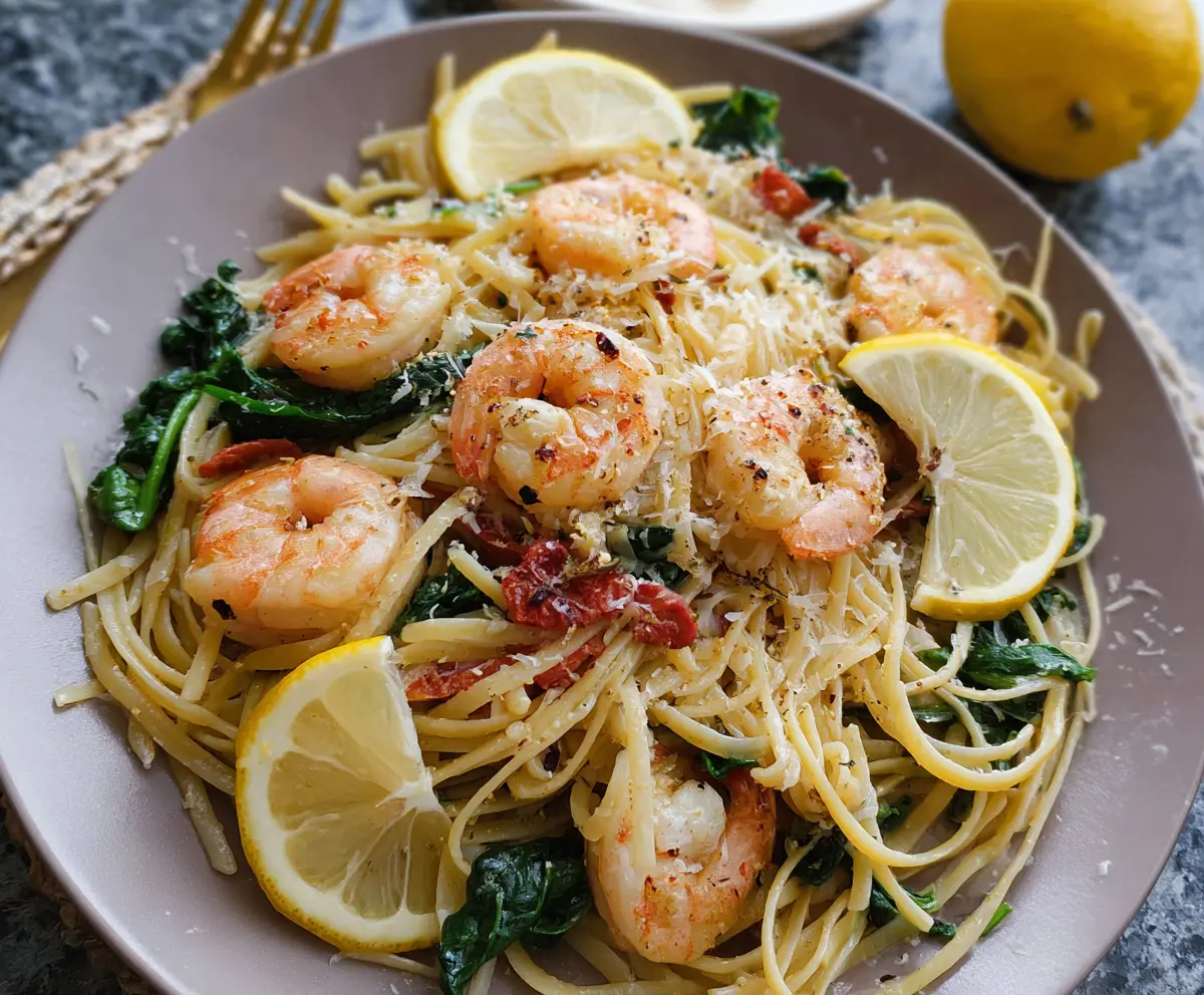 This Lemon Garlic Shrimp Pasta is a tasty and easy dish that combines juicy shrimp, bright lemon juice, and garlic goodness. Perfect for a weeknight dinner!