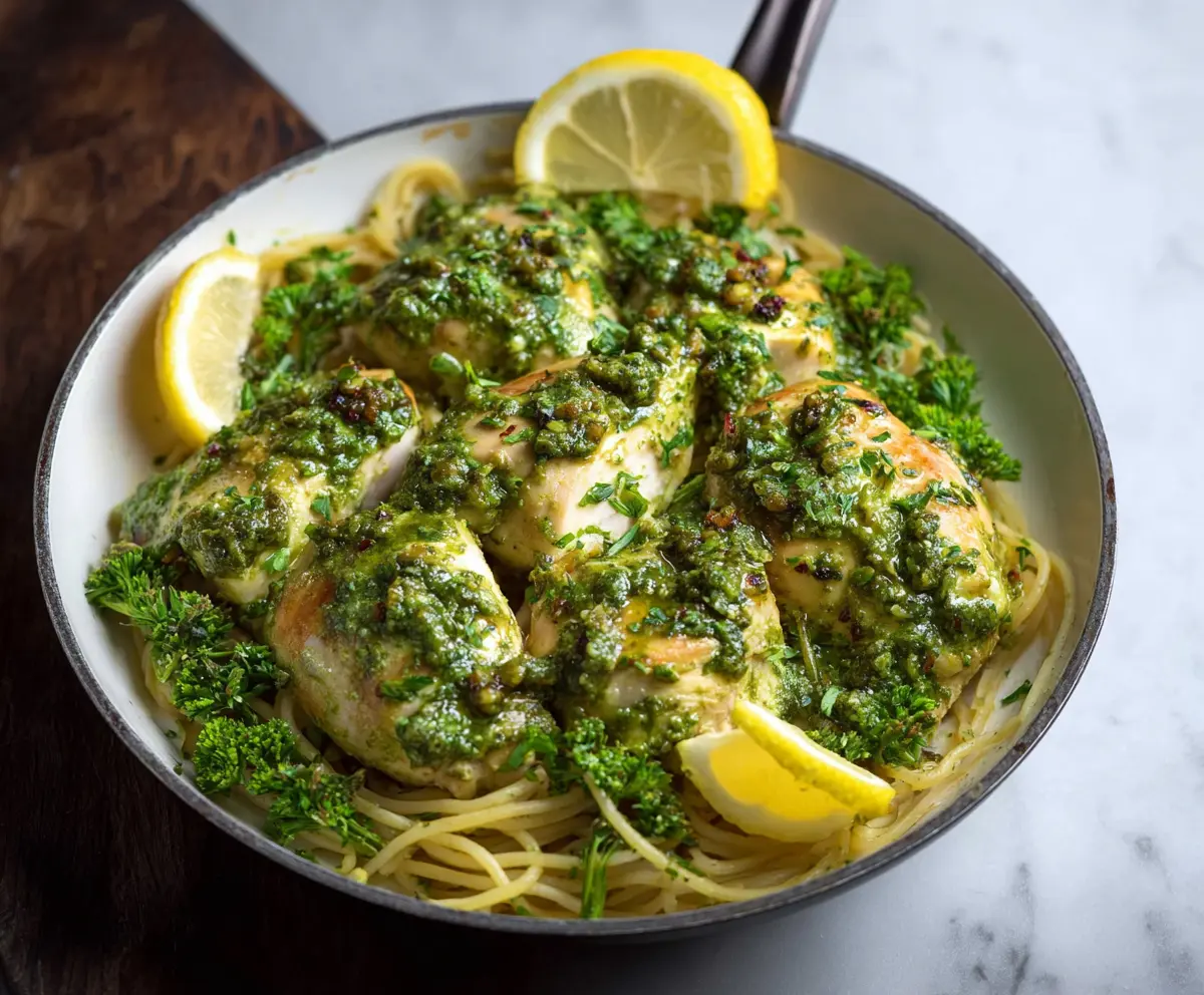 Return the cooked chicken to the skillet, spooning the lemon pesto sauce over each piece. Allow it to heat through for about 2-3 minutes.