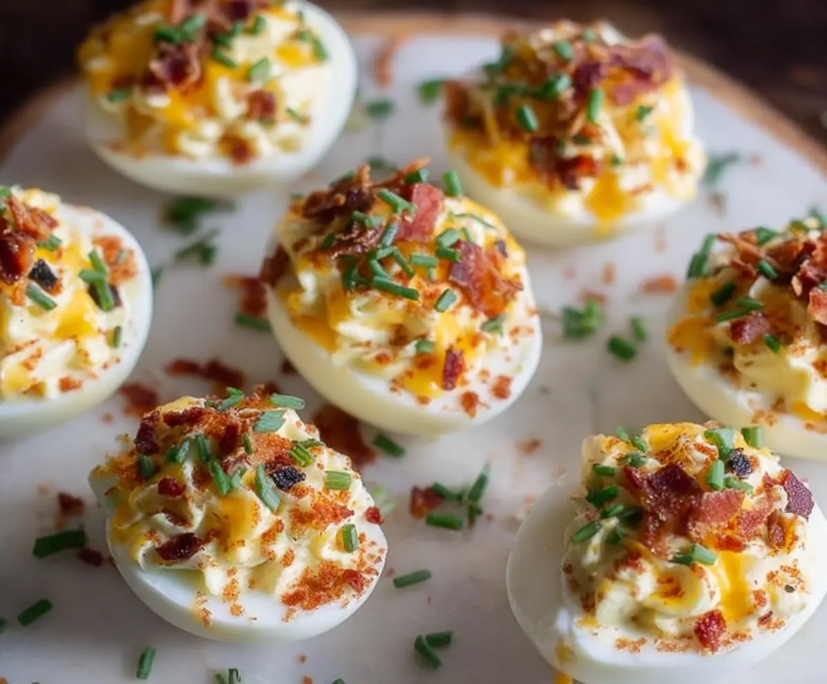 Loaded deviled eggs are a fun twist on the classic appetizer! They’re creamy, tangy, and packed with flavor thanks to added goodies like bacon, cheese, and spices.