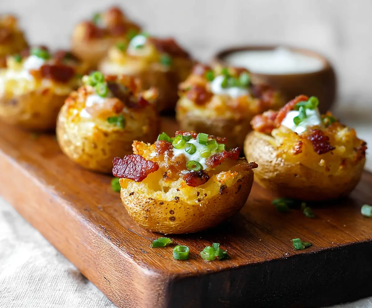 Absolutely! While baby potatoes work best for bite-sized snacks, you can also use Yukon Gold or red potatoes. Just make sure they’re small enough to hold the filling!