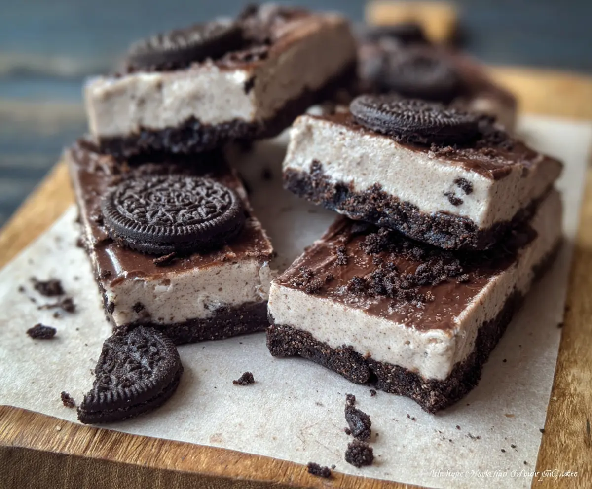 These No Bake Oreo Protein Bars are a fun and tasty treat! Packed with chocolatey flavor and crunchy Oreo bits, they are perfect for a quick snack or post-workout boost.