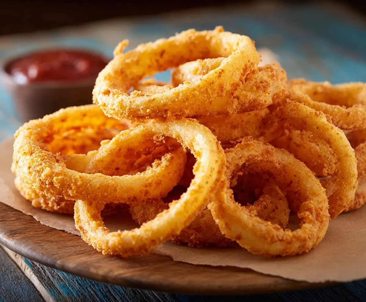 Onion rings are crispy, golden delights that are perfect for munching! Made by slicing onions, dipping them in batter, and frying them until they’re crunchy, they are a tasty snack.