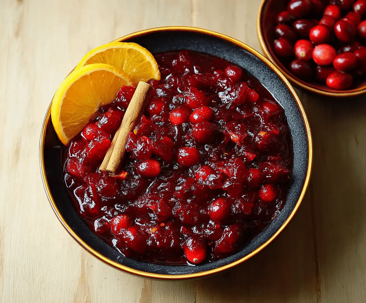 This bright and zesty cranberry sauce is a perfect mix of tangy cranberries, warm cinnamon, and fresh orange juice. It adds a festive touch to any meal!