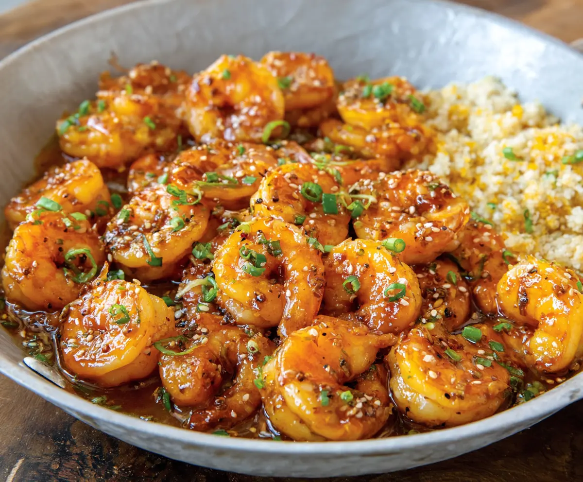 Remove the skillet from heat. Sprinkle the toasted sesame seeds and sliced green onions on top for added texture and color. Serve your Orange Honey Garlic Shrimp immediately over cooked quinoa or rice, with a wedge of lemon on the side for an extra citrusy kick!