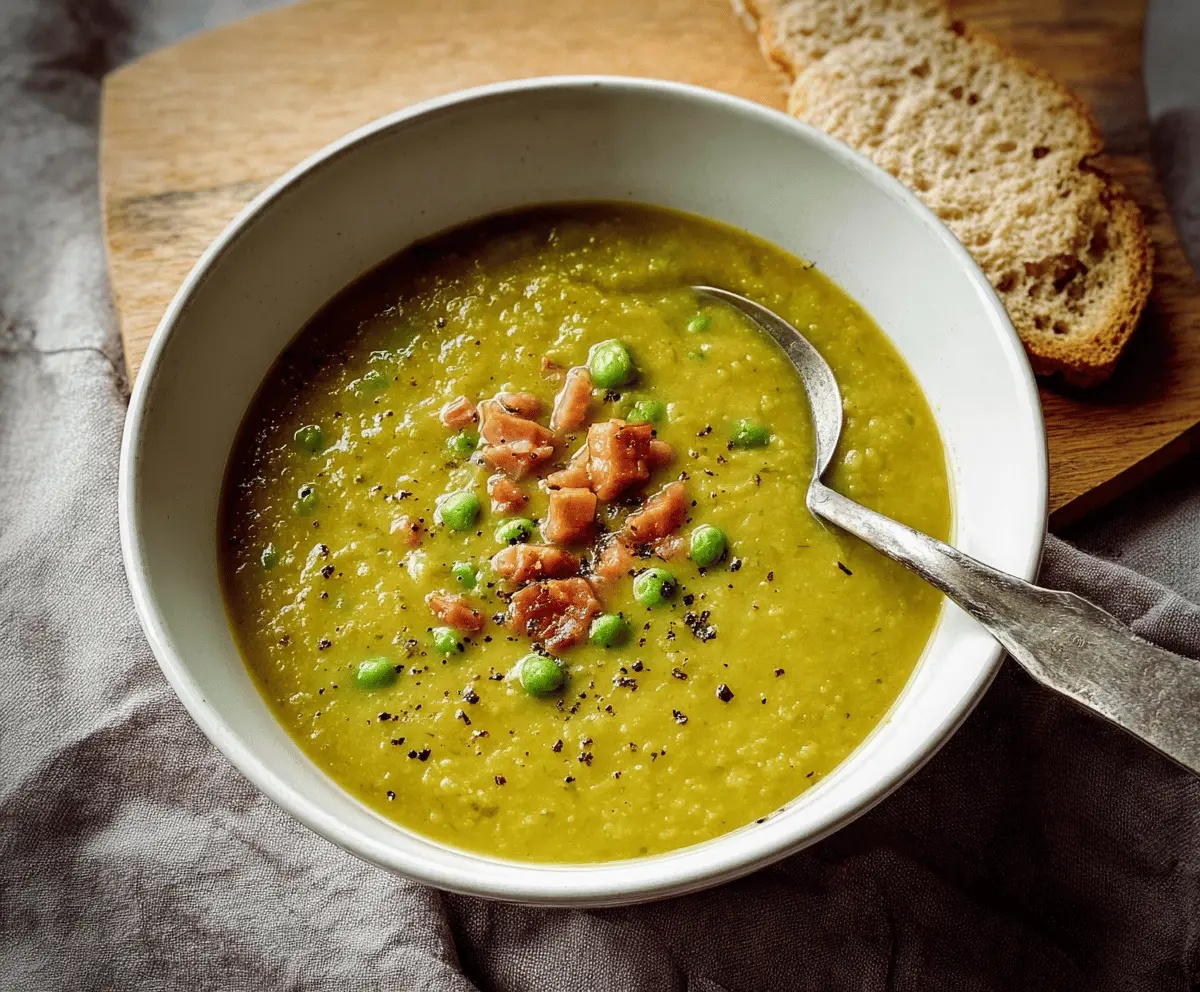 This pea and ham soup is warm, hearty, and perfect for chilly days. It combines tasty split peas and savory ham for a delicious, comforting meal.