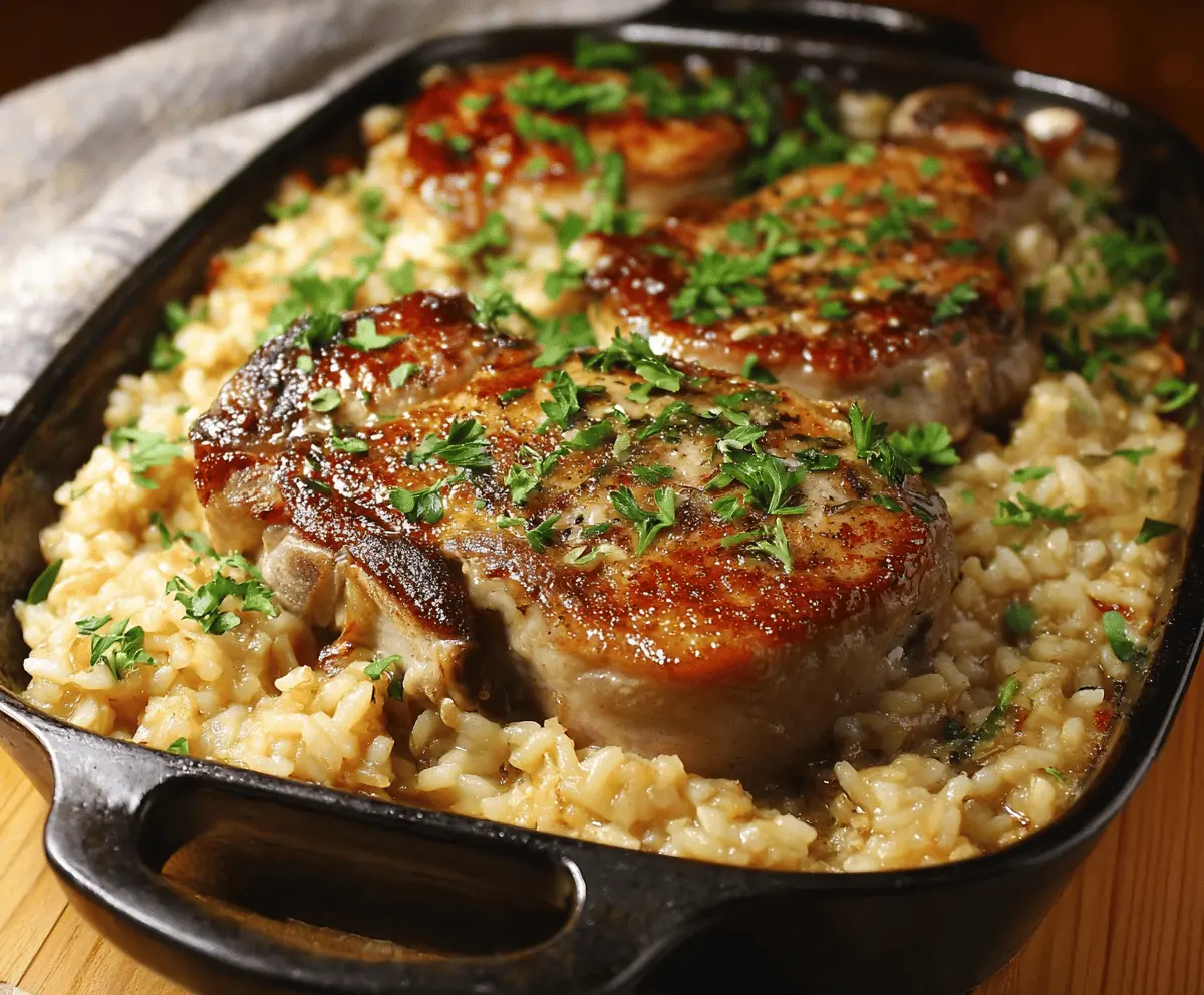This Pork Chops and Rice Casserole is a warm and cozy dish that combines juicy pork chops with fluffy rice and creamy goodness. Perfect for a comforting family meal!
