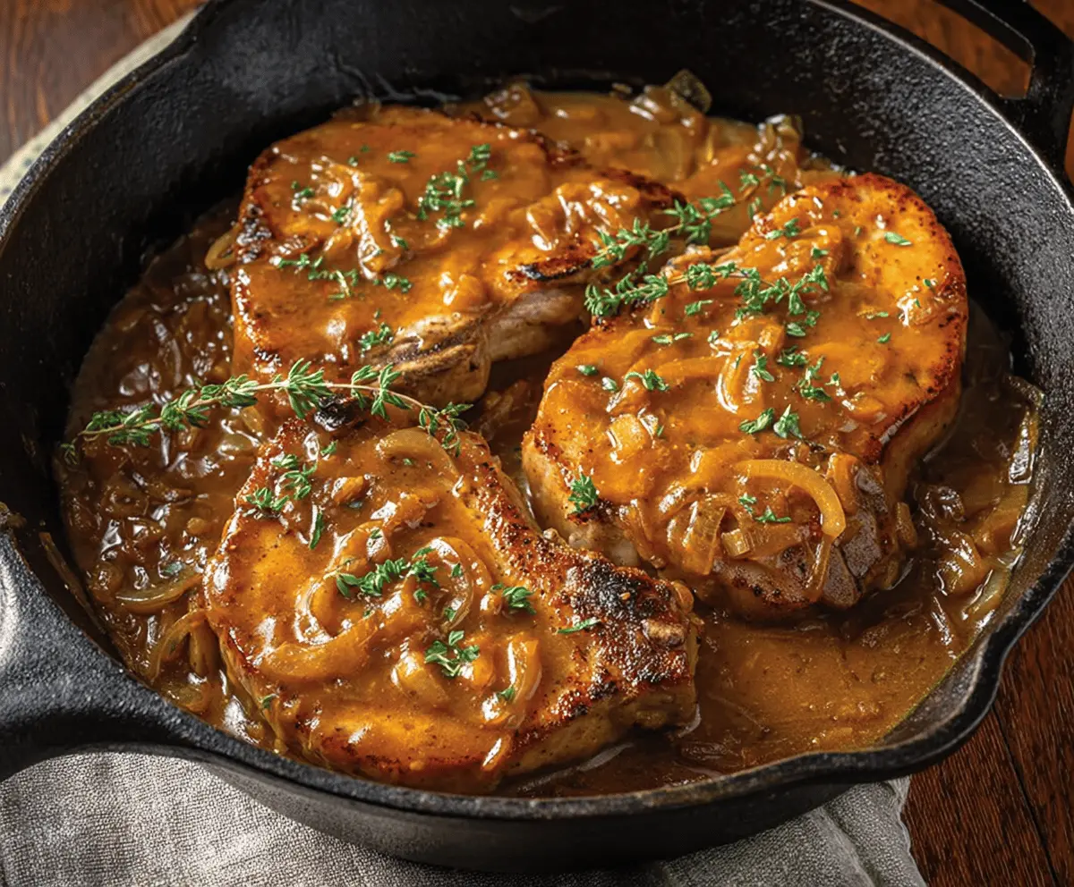 These pork chops are juicy and covered in a tasty onion gravy that makes every bite special. They’re easy to make and perfect for a cozy dinner at home!