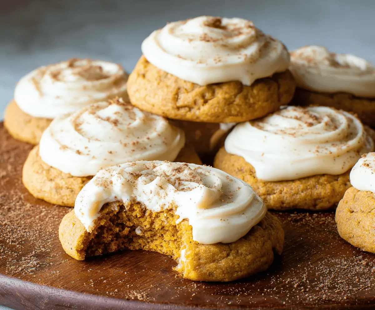 These soft, spiced pumpkin cookies paired with tangy cream cheese frosting make for a cozy and delightful fall treat. Enjoy every bite!