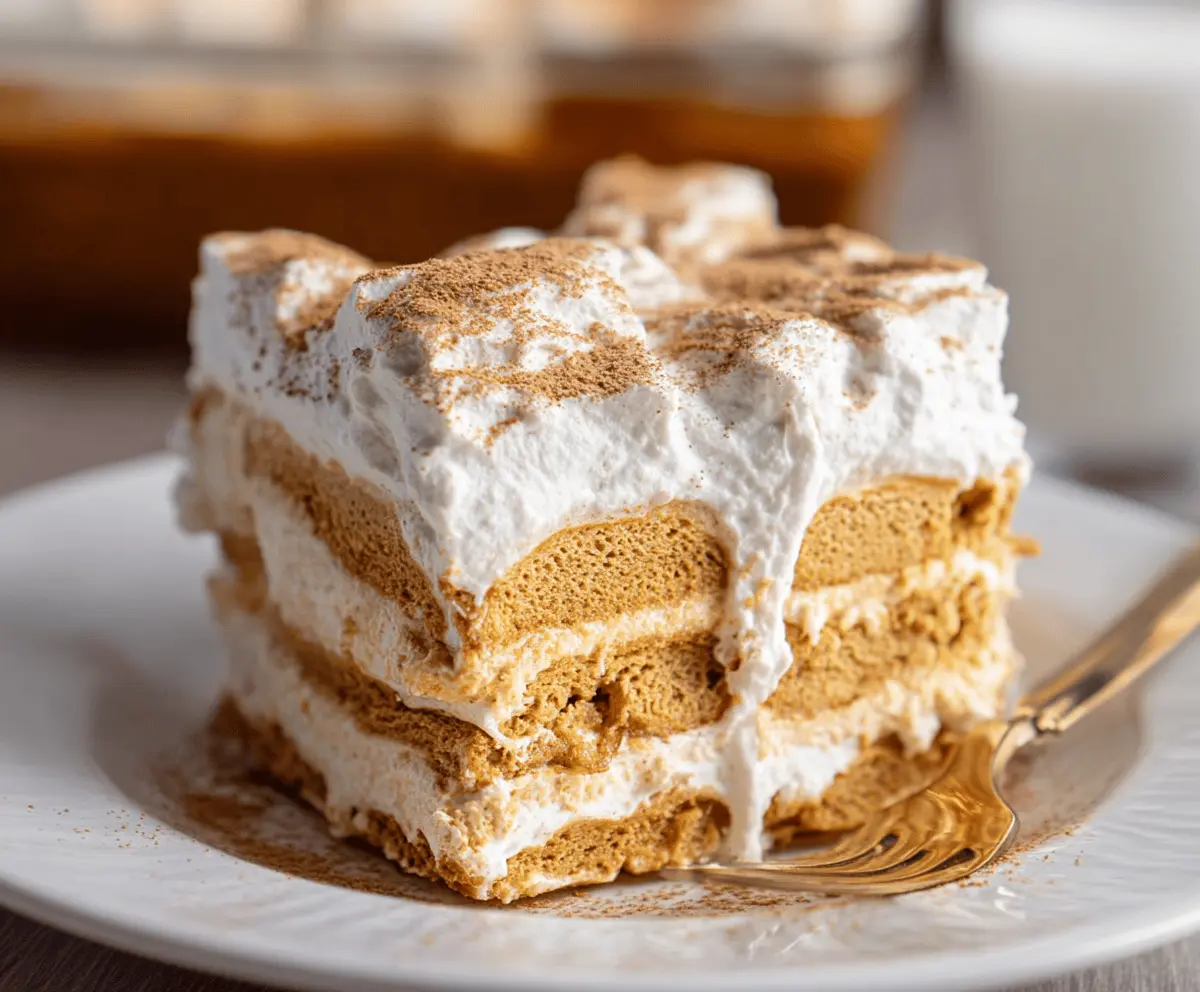 This no-bake Pumpkin Icebox Cake is creamy, lightly spiced, and perfectly pumpkin-flavored—a delicious treat for any fall gathering!